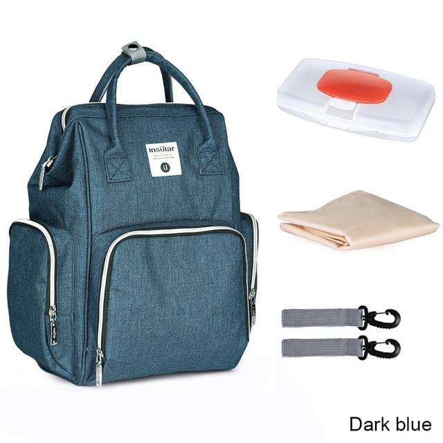 In regard to this mummy bag,it's stylish,luxurious,Amazing and it have a large capacity space.And you can carry a lot of baby things,like diaper pad,feeding-bottle,baby toys and so on.In addition,this mummy bag is very suitable for shopping, traveling when you with baby.
